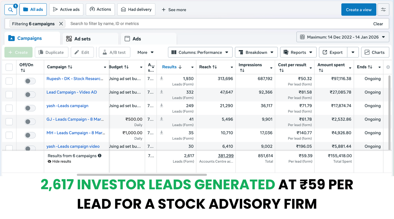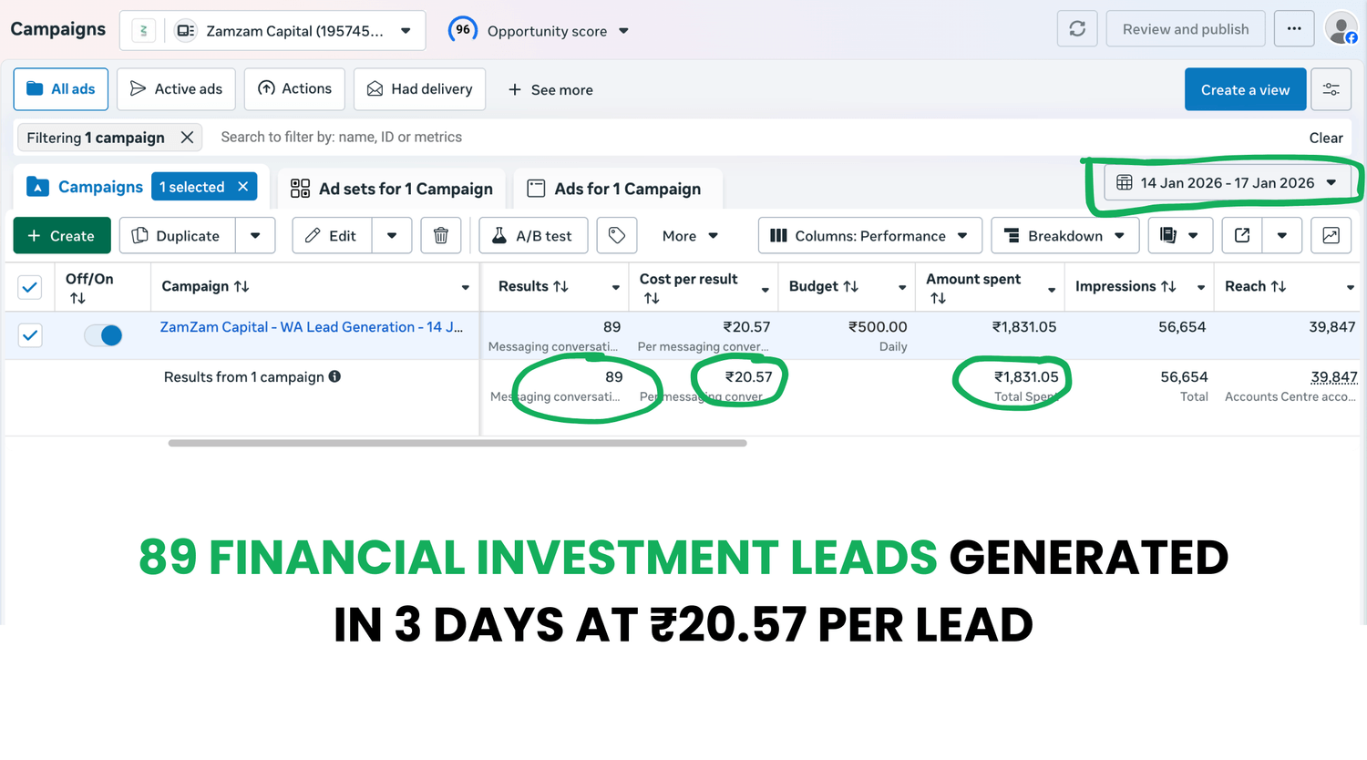 ā¹20.57 Cost Per Lead Using Meta Ads