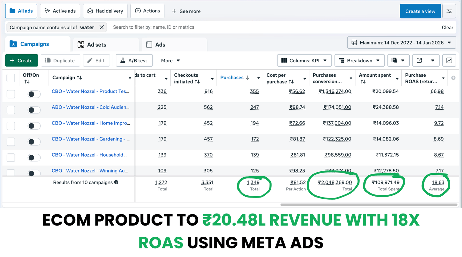 ā¹20.48L in Revenue Generated Using Meta Ads